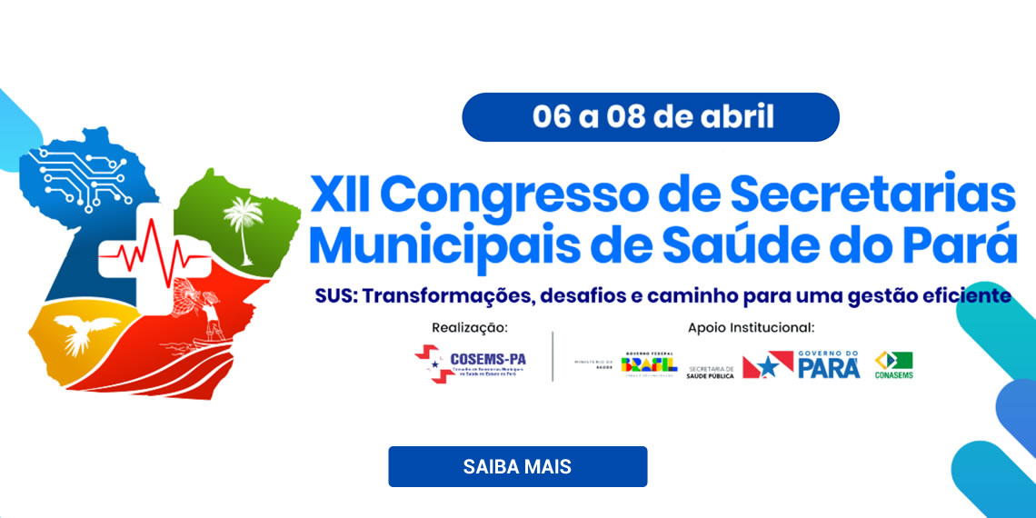 Vem aí o XII Congresso de Secretarias Municipais de Saúde do Pará! Com o tema “SUS: Transformações, desafios e caminhos...