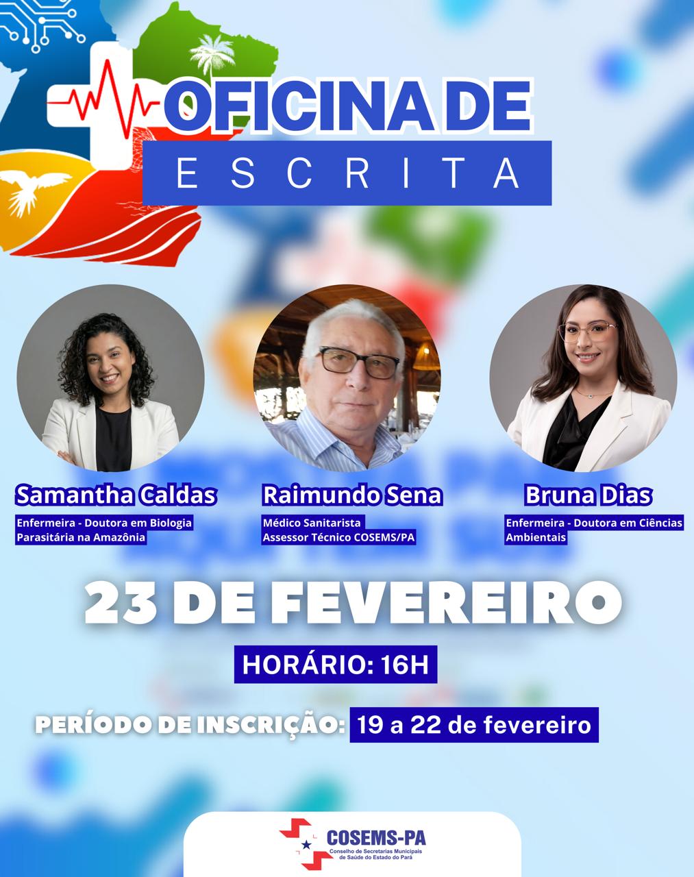 A oficina será ministrada pelas enfermeiras Samantha Caldas e Bruna Dias, juntamente com o assessor técnico do Cosems/PA, Raimundo Sena. O público-alvo são profissionais das secretarias de saúde dos municípios que desenvolveram experiências exitosas no âmbito SUS.