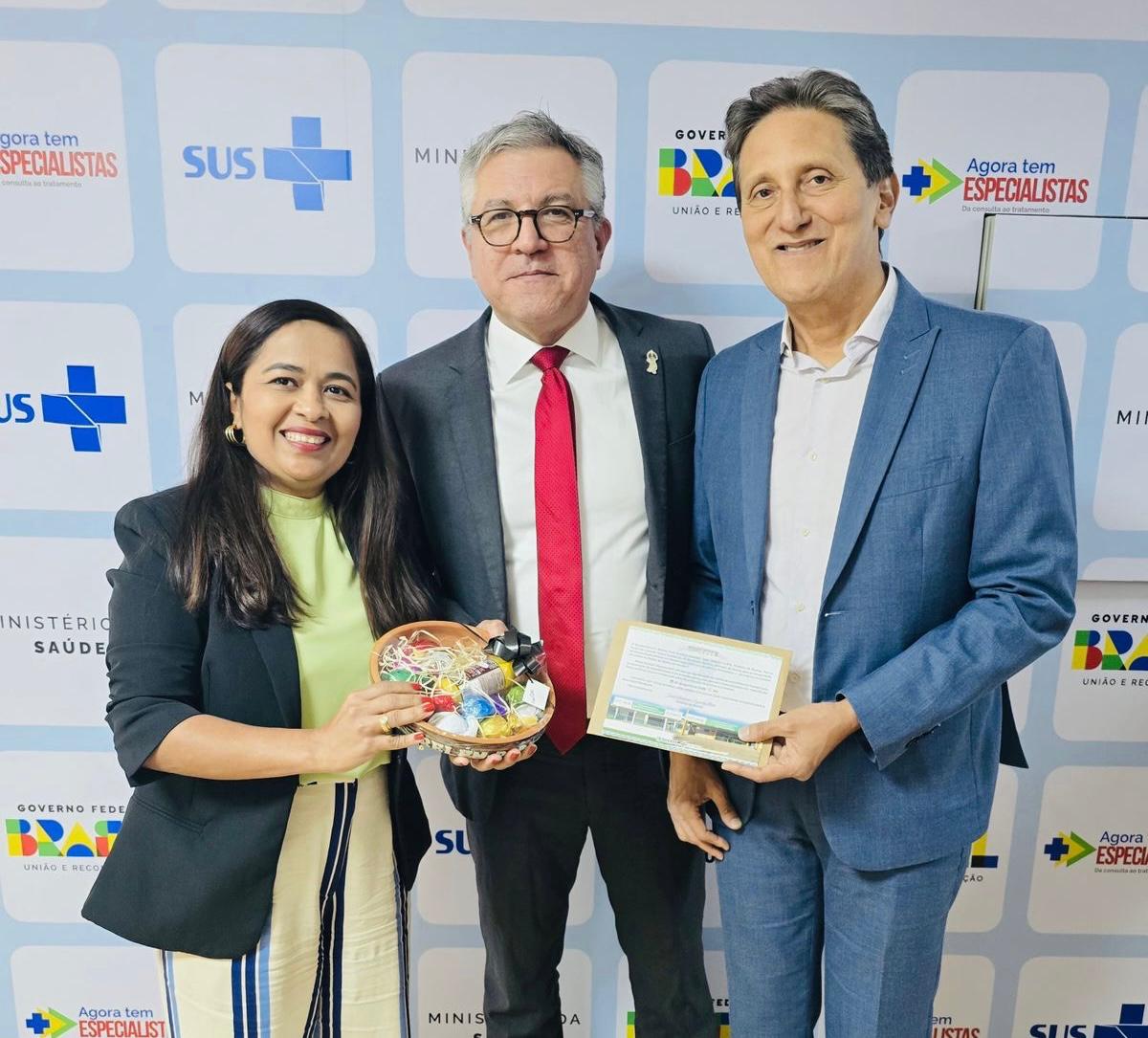 Jucineide também reuniu com a Dra. Lena Peres, da Atenção Especializada e, na oportunidade, conversou com o Secretário de Atenção Especializada à Saúde, Mozart Sales, cuja pauta foi o programa Agora tem Especialista.